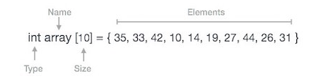 - C언어에서 배열 선언 시 아래와 같다.