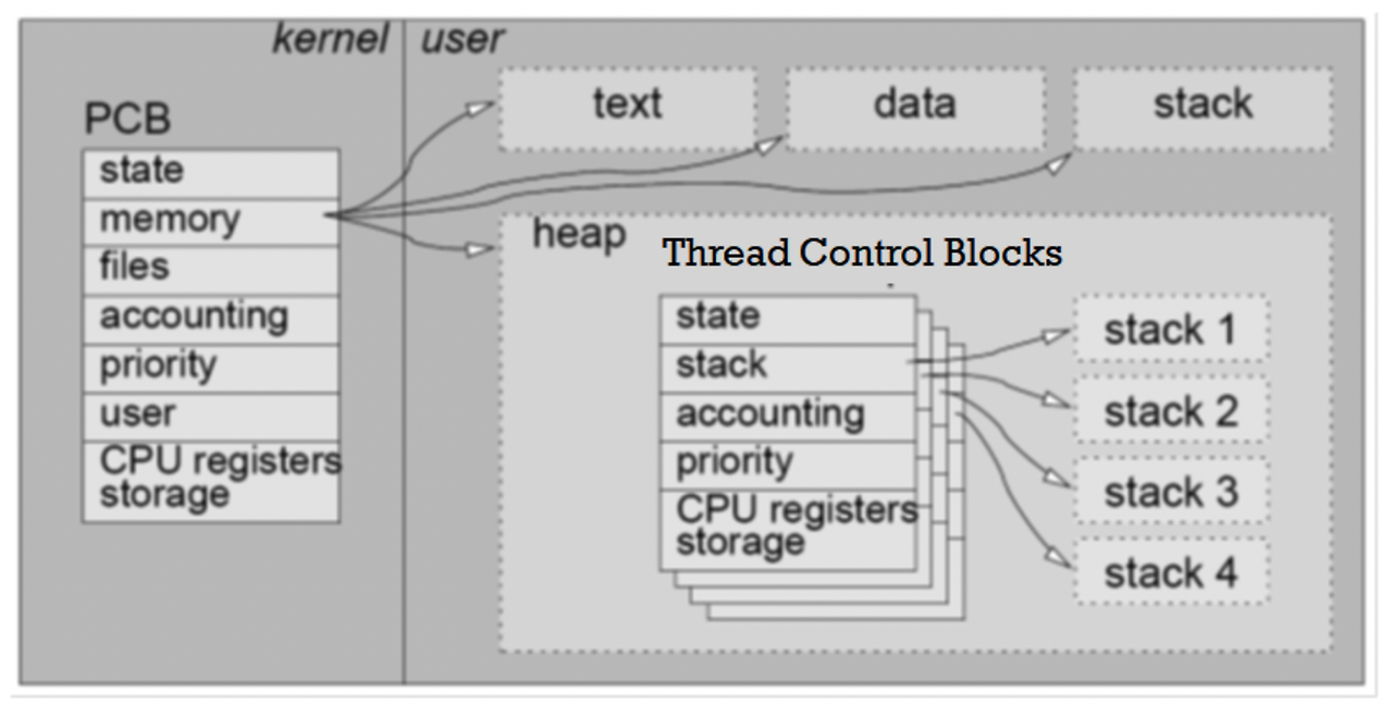 - 메모리영역 중 PCB는 커널 영역TCB는 유저영역과 커널 영역에 둘다 있을 수 있다.