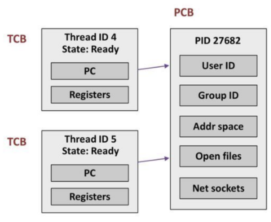- TCB는 PCB보다 적은 데이터를 가지는 자료구조이다.