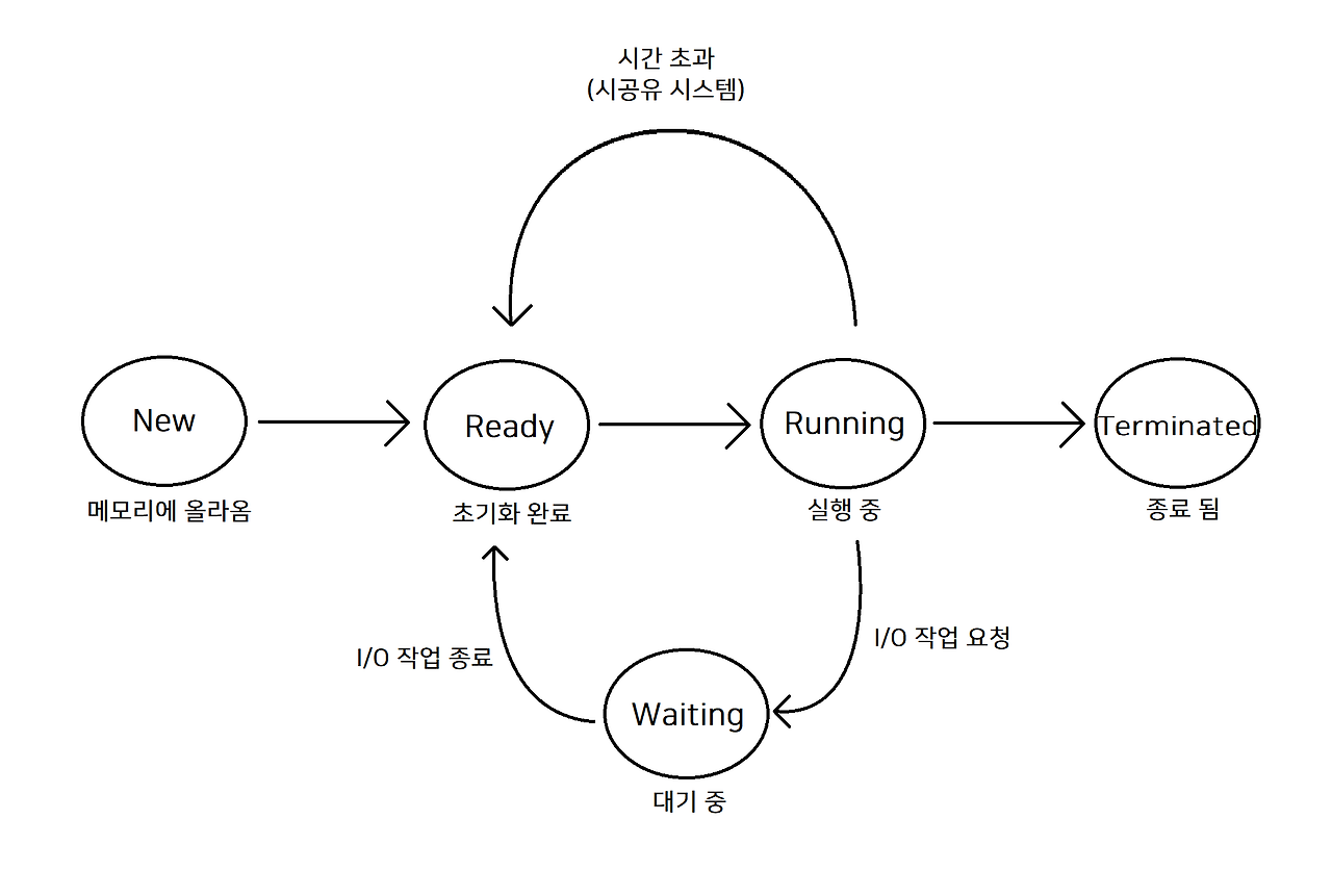 - 프로세스의 생명주기는 컴퓨터 시스템에서 프로세스가 생성되고 실행되며 종료되는 과정을 나타낸다.