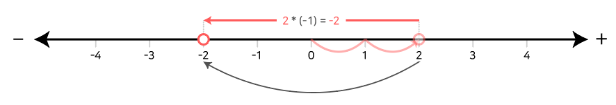 - 왼쪽 항의 수가 가진 크기를 오른쪽 수가 가진 크기의 배율로 늘리거나 줄인 후 오른쪽 수의 부화가 양의 부호인 경우 원 방향을 유지하고, 음수인 경우 반대 방향으로 대칭시키는 작업