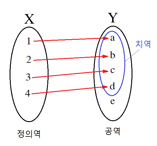 - 함수에서 첫 번째 집합을 정의역(Domain)이라고 하고, 두 번째 집합을 공역(Codomaion)이라 한다.