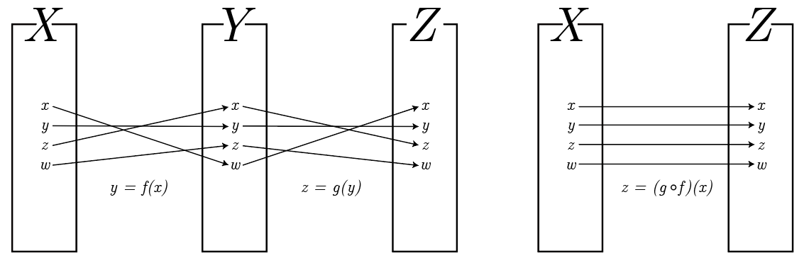 - X,Y,Z 세 집합 사이에 두 함수 f(x)와 g(y)가 존재할 때