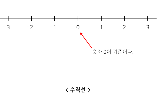 - 실수를 대응시켜 표현한 직선을 수직선(Number Line)이라하며 직각으로 만나는 직선을 의미하는 수직선(Perpendicular Line)과 같은 의미이다.