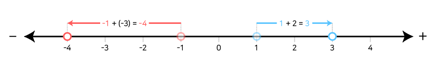 - -4와 -1의 합은 수의 위치를 왼쪽 방향으로 4칸만큼 이동시키는 작업