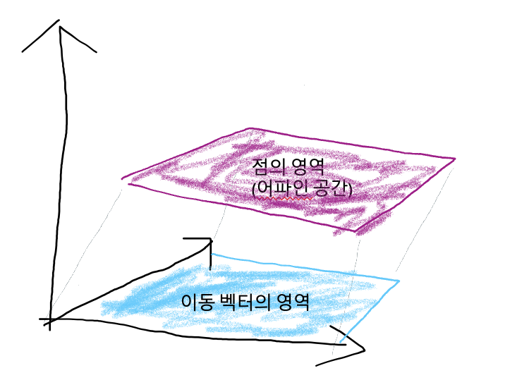 - 이를 위해 어파인 공간은 vector라는 개념을 추가로 제공한다.