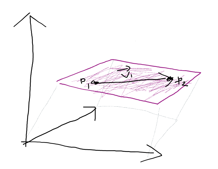 2. 위 수식에서 P1을 우변으로 이항하면 점과 점의 뺄셈을 통해 이동벡터를 만들 수 있음