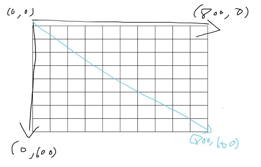 - 하지만 모니터 화면의 좌표계는 y축이 아래쪽을 향하는 방식을 사용한다.