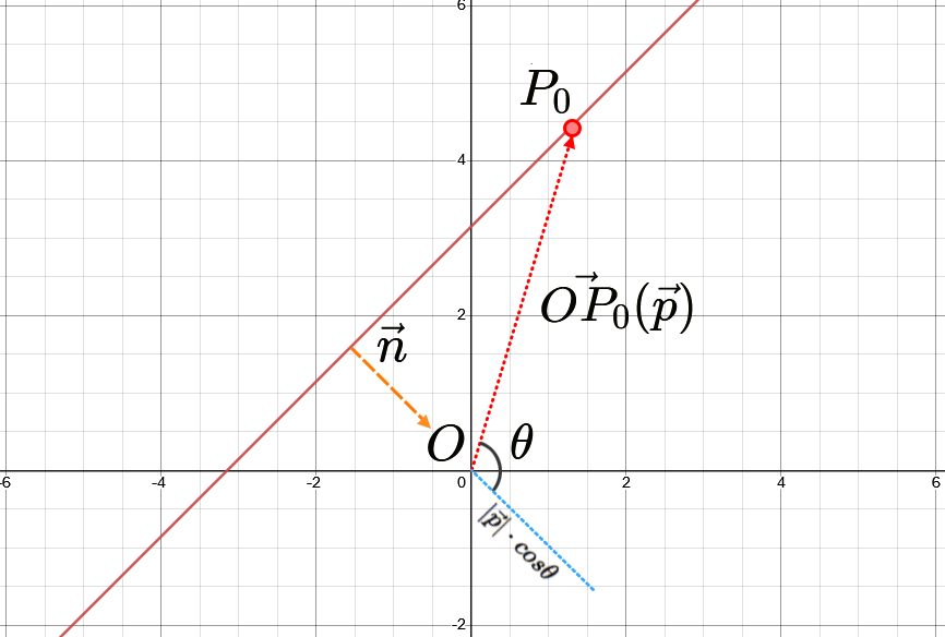 - 임의의 점 P가 있을 때, 원점에서 점 P로 향하는 벡터 OP를 법선 벡터에 내적한 값을 p로 표기