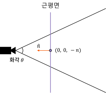 - 근평면은 카메라의 원점을 향하고 있으므로 (0, 0, 1)이 된다.
