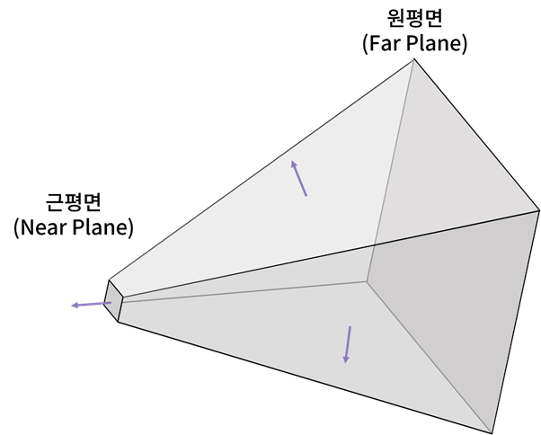 - 절두체(Frustum)는 평면으로 표현되는 부분을 뜻한다.