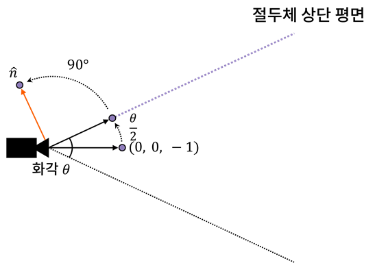- 위 그림과 같이 위에서 절두체를 내려다본 경우를 생각