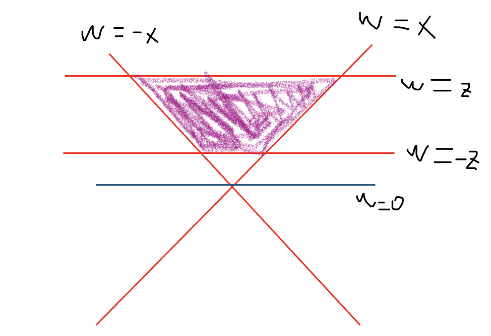 - 앞서 잘라내는 영역을 파악하기 위해 음의 영역, 즉 w < 0의 부등식을 사용했는데, 이번 경우에는 다음 식을 사용한다.