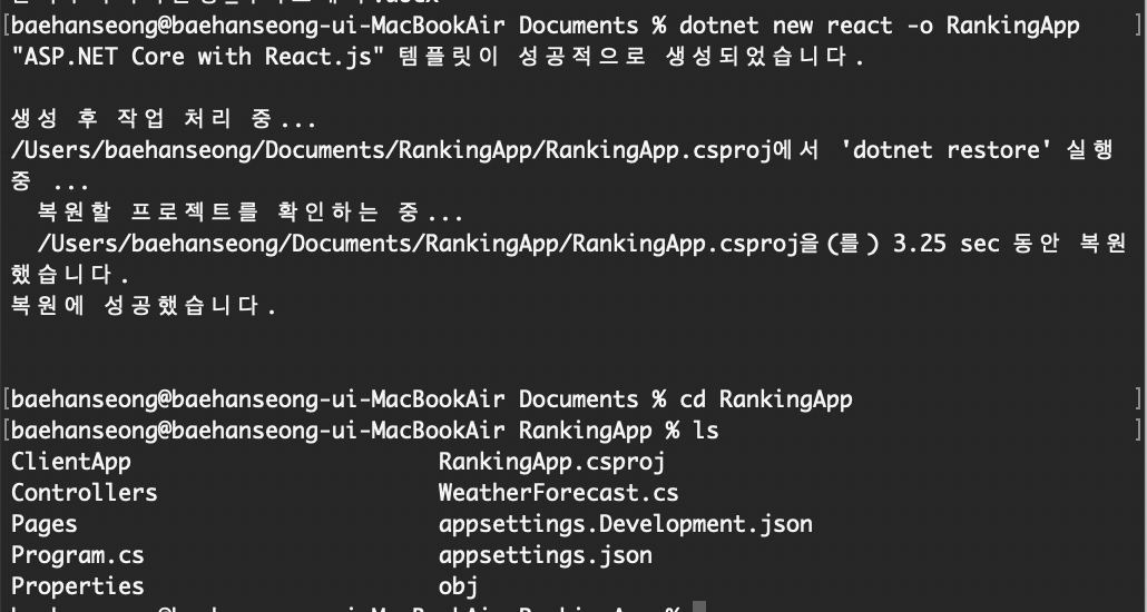 dotnet new react -o "프로젝트명"