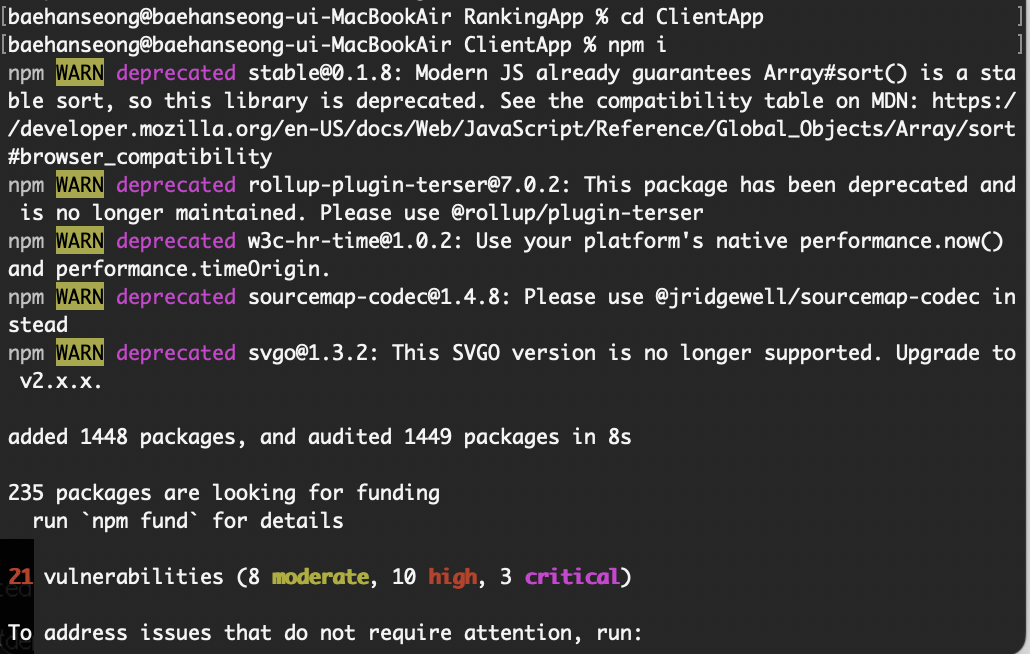 - ClientApp 디렉터리에서 React에 필요한 모듈을 설치한다.
