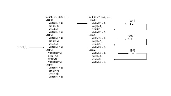 - i를 통해 수열의 순서 번호를 증가시키며 DFS를 수행하고, 방문 표시를 초기화한다.